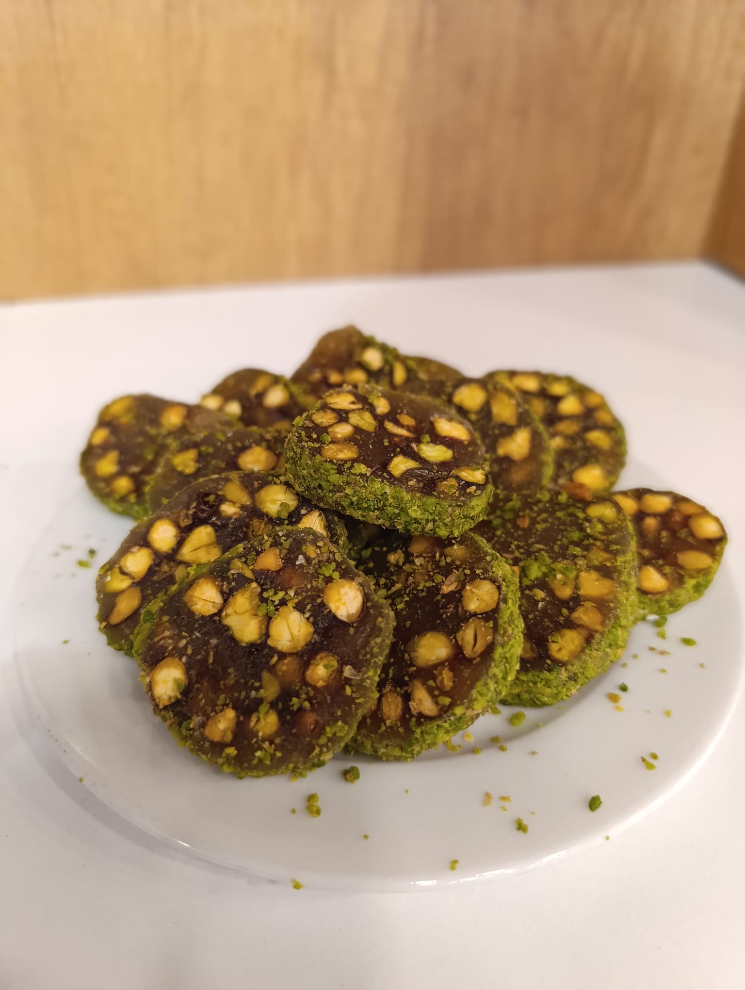 İçindekiler:Hurma suyu,Nişasta,Limon tuzu,Antep fıstık içi,Boz Antep fıstık içi                            Alerjen uyarısı:Antep fıstığı.İz miktarda gluten içerebilir.